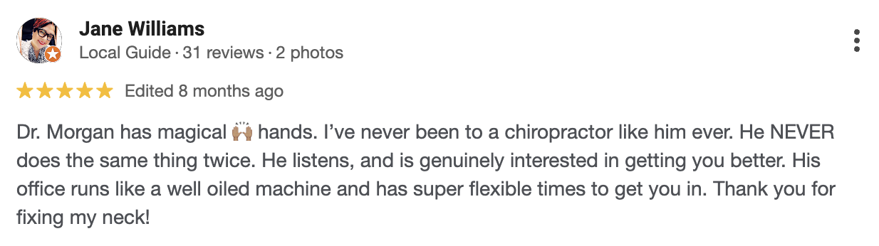 - Complete Health & Spine Evaluation (Health history, physical exam, balance & spinal assessment)